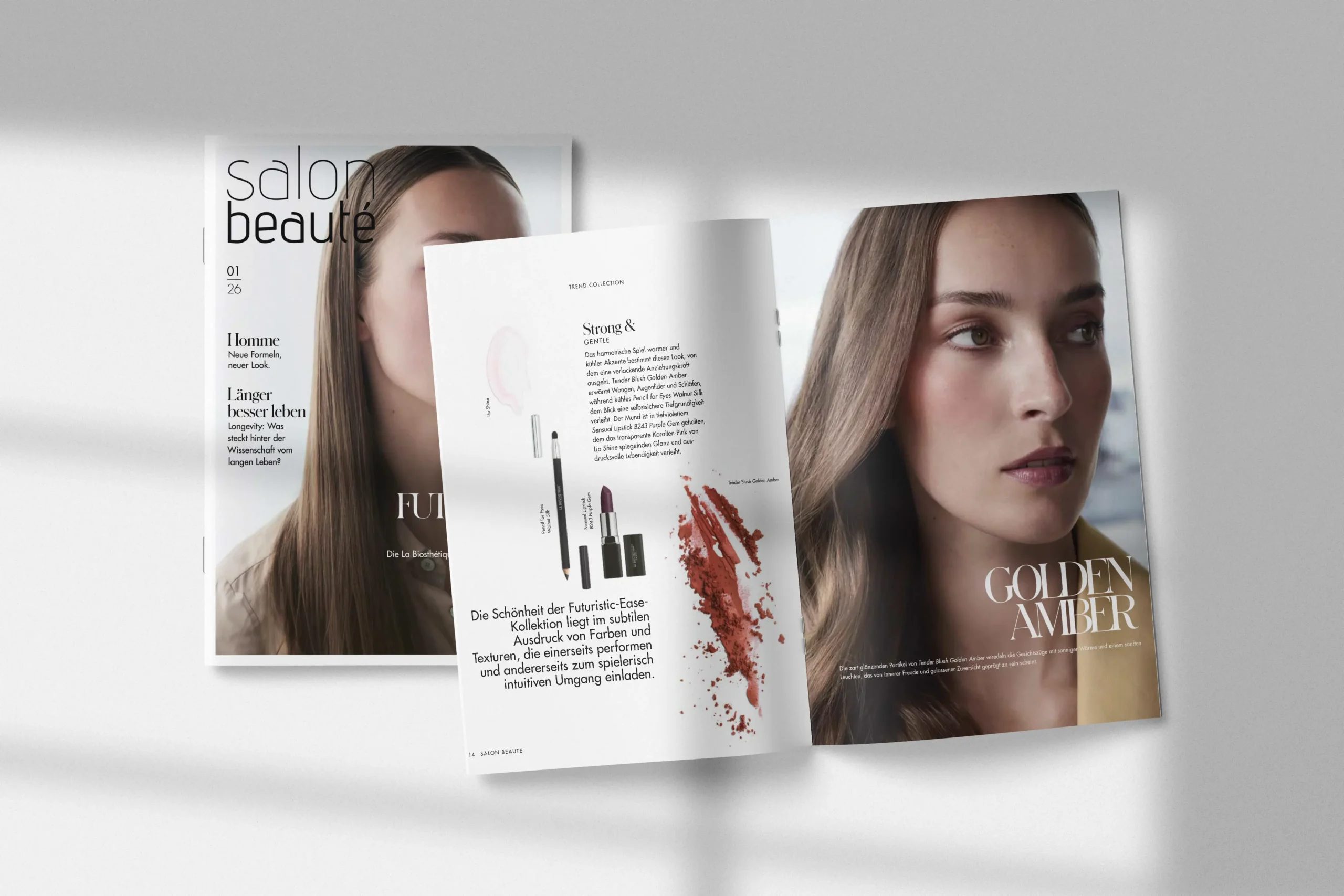 «Der beste Weg, die Zukunft vorherzusagen, ist, sie zu gestalten», so der amerikanische Informatiker Alan Kay. Wir tun dies in den hinreißenden Farben und ausdrucksvollen Looks unserer Make-up-Trendkollektion FUTURISTIC EASE, die zu einem leichten und optimistischen Blick in die Zukunft einlädt. Machen Sie mit und begegnen Sie Ihrer Zukunft in anziehenden Neutrals, einem matten Scharlachrot voller Präsenz und dem frischen Lufthauch von schimmerndem Mintgrün! Um eine schöne, gesunde und vitale Zukunft geht es bei unseren Serien Soleil und Homme, die sich mit vielen Neuerungen präsentieren, und im großen Interview mit dem renommierten Longevity-Experten Nils Behrens. Schlagen Sie mit dieser Frühlingsausgabe von Salon Beauté eine neue Seite Ihrer Zukunft auf. Wir freuen uns darauf, sie hier im Salon gemeinsam mit Ihnen zu gestalten!